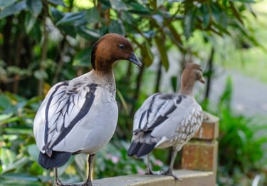 There are several species that come and go from the garden. They are all wild and include Pacific Black Ducks, Chestnut Teals, Australian Wood Ducks and more. You’ll see them in the creek as well as in the duck ponds. You can feed them, but are asked to stick to sliced grapes, sweet corn, leafy greens or peas. The tea room in the garden also sells bags of duck food for just $1.