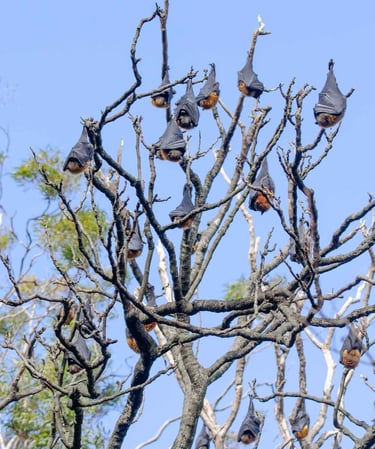 The garden is also home to a colony (or “camp”) of the endangered Grey-headed Flying Fox. These interesting creatures are Australia’s largest megabat (what a great word!!), with a wingspan up to a metre. They’re nomadic mammals, and travel across Australia. You’ll likely hear (and smell) the flying foxes before you see them. There seems to always be quite a bit of chatter even when they are sleeping during the day. So look up – there are several trees absolutely filled with these upside down sleepers.