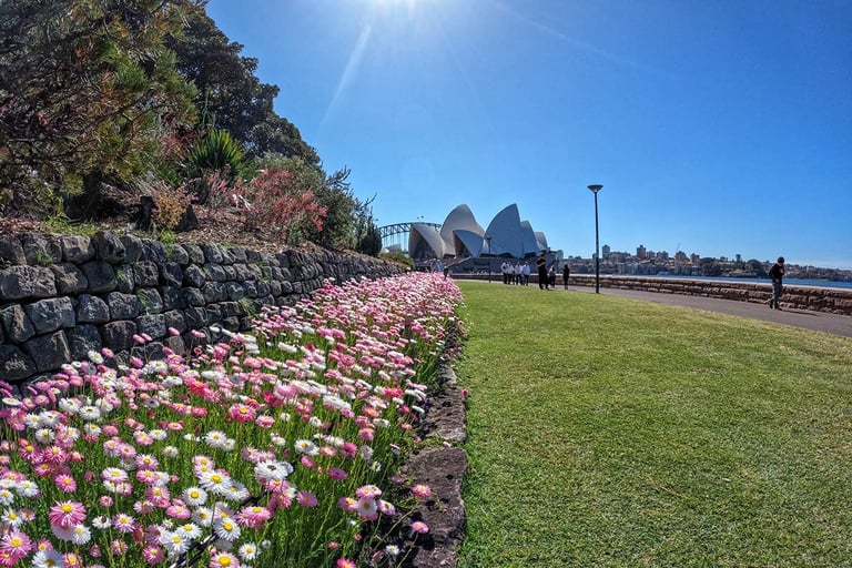 Sweeping lawns with spectacular views of Sydney Harbour and Opera House